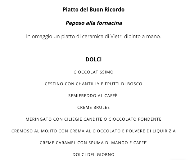 MENU ALLA CARTA