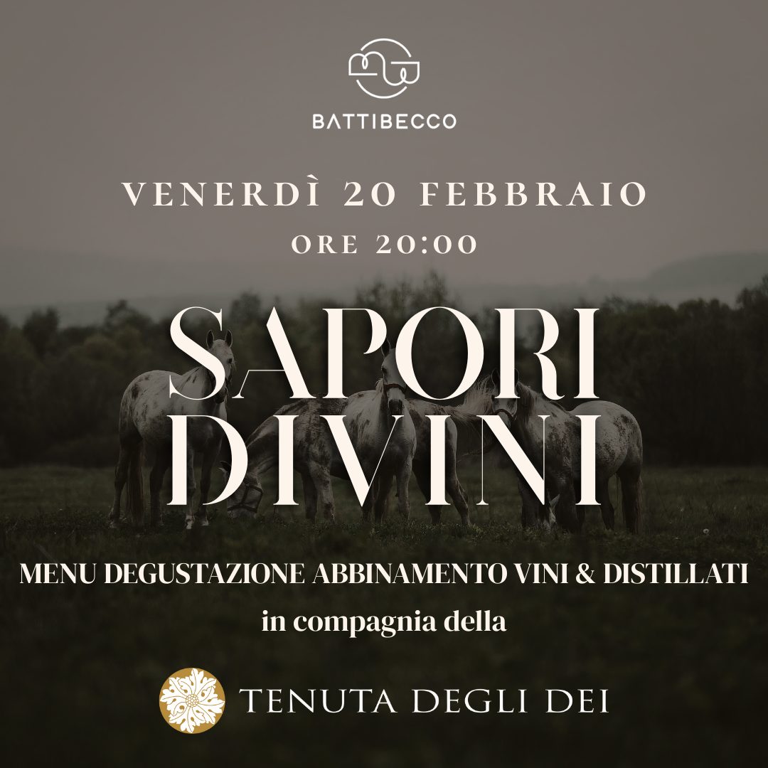 SAPORI DIVINI – 20 FEBBRAIO – SERATA DEGUSTAZIONE CON TENUTA DEGLI DEI